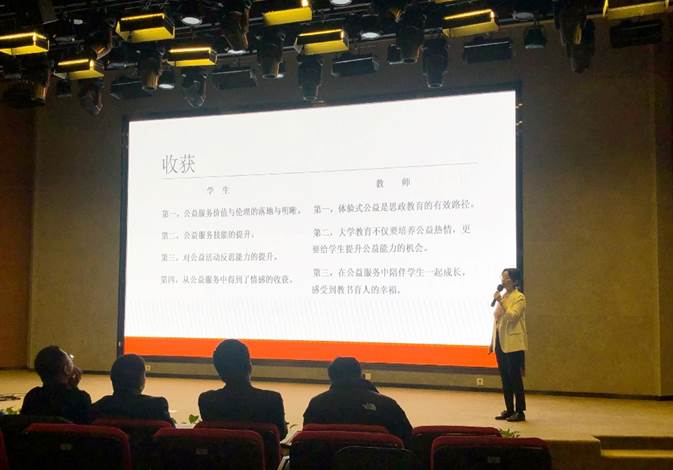 “让我们做朋友”团队项目由彭瑾老师进行答辩。从2018年以来,让我们做朋友项目以儿童社会能力干预项目为基础,对农村地区儿童开展公益服务,并影响了当地教育政策。彭老师生动清晰地介绍了“让我们做朋友”项目的来源与初心、服务开展过程以及项目的最终受益和产出,该项目以及和彭老师指导学生并共同参到公益活动中的奉献精神获得了各位评委老师的一致认可与赞赏。