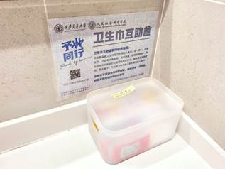 予她同行,绝不让她独行。为关注女性身心健康,传递人文关怀,十一月起,团支部举办了“Stand by her予她同行”的活动,在创新港涵英楼二、三、四层设置卫生巾互助盒。作为第一家在创新港开展活动的支部,举办工作交流会,新媒体学院、经济与金融学院、马克思主义学院和航天航空学院纷纷响应,共建“人文交大”。