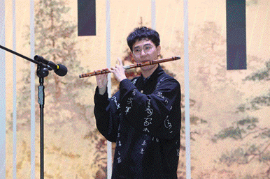 哲学91班的阴睿同学带来了一首具有浓厚中国风,经由传统乐器竹笛改编演奏的《如果当时》,乐器声古韵悠扬,婉转动人,为观众们营造了诗曲合一的氛围。