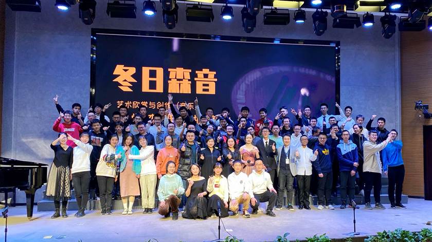 教二1400丝路大讲堂上演。这是钱学森班《艺术欣赏与创作(音乐)》2020秋季课程的结课汇报演出。钱学森班的同学们是成人影视片