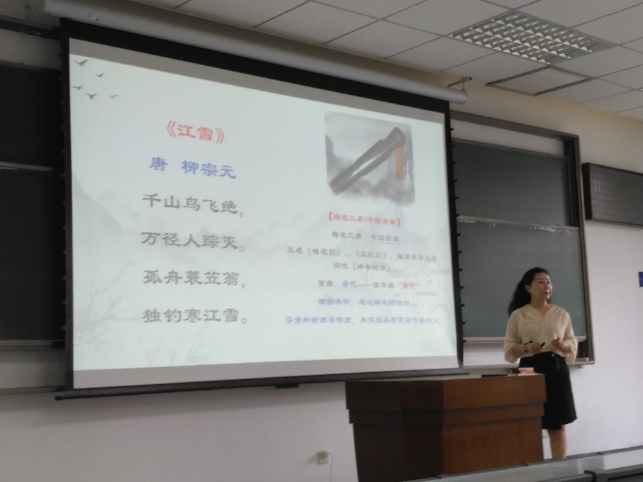 音乐教育中心曹耿献副教授讲解。曹老师现任中国高教学会音乐教育专委会委员、中国传统音乐学会会员等职,曾赴美国德州大学巴特勒音乐学院访学研究,在中外交响乐演奏及研究方面有着很高的艺术造诣。本次讲座中曹老师特别针对人工智能学院学生的兴趣和知识背景,精心编排了寓教于乐的精彩内容,将中国传统交响乐与科学研究中的创新思维相融合交叉,从莫扎特与爱因斯坦的共同特质谈起,内容纵横古今、中西合璧,将高雅艺术、红色基因、中国元素、创新思维跨界融合在一起,让在场师生们在尽情欣赏优美音乐艺术的同时耳目一新并深受启发。