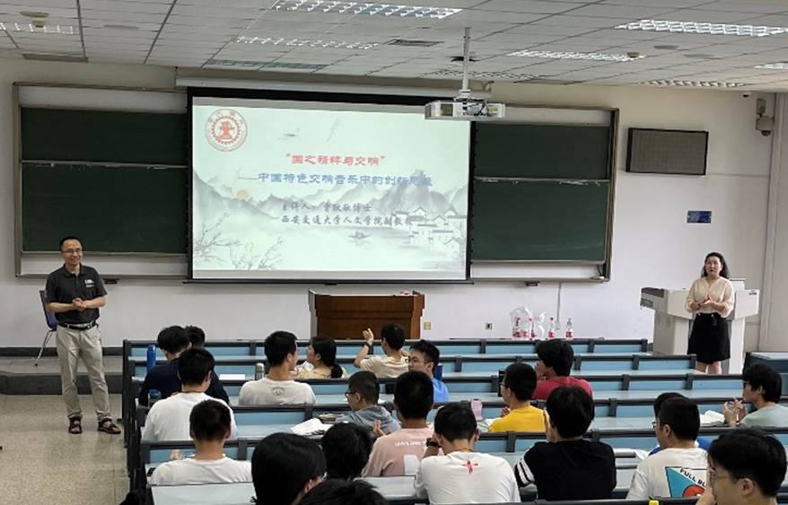 6月2日下午,交大的校园夏日流火,绿树掩映,教学主楼D304教室内人工智能学院2019、2020两届全体本科生百余名同学欢聚一堂,琴瑟齐鸣,这里正在举办一场别开生面的音乐赏析讲座。