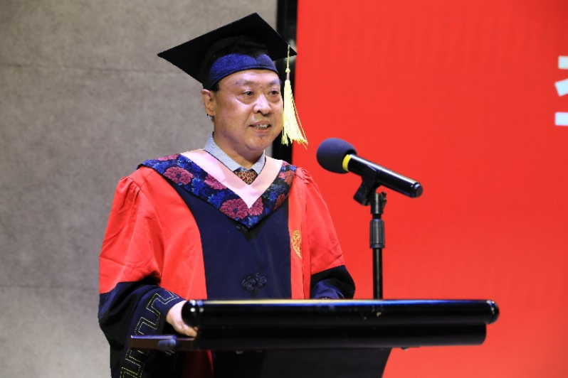 韩鹏杰教授作为教师代表,向同学们致以寄语。2021届毕业生是幸运的一代,生于改革开放之后,但依然成长于红旗之下。学院的每一位老师,都希望同学们初心如磐、使命在肩,从百年党史中汲取养料,主动投身到伟大事业的建设中;果毅力行,实干笃行,以实干的精神做到凡事有交代、件件有着落、事事有回应;终身学习,劳逸结合,将厚重的传统历史文化、革命的红色文化以及我们西安交大的西迁精神终身运用。最后,祝福大家无论走得多远,经历得再多,也能够天涯踏尽红尘,依然一笑作春温,归来仍做少年游!