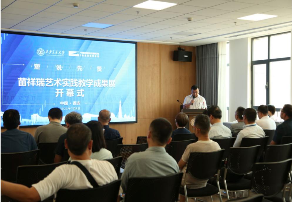 党委书记许佳辉,西安美术学院雕塑系主任陈晓春,陕西省雕塑院副院长胡冰分别致辞。展览作品创作人苗祥瑞向与会领导及嘉宾致答谢词,向大家百忙之中参加本次展览活动表示衷心的感谢,并分享了自己创作展览作品的心得与思考。