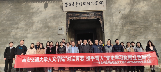 社会学系师生联合党支部与硕0115和0116党、团支部前往泾阳县安吴青年训练班纪念馆,开展“对话青春 携手育人”党史学习教育红色研学活动,推动师生支部建设深度融合。两支部党员、团员总计30余名师生参加活动。