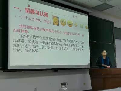 社会心理学研究所所长倪晓莉教授作题为“情绪、情感和认知”的报告,三院专职辅导员和研一全体同学参加讲座。