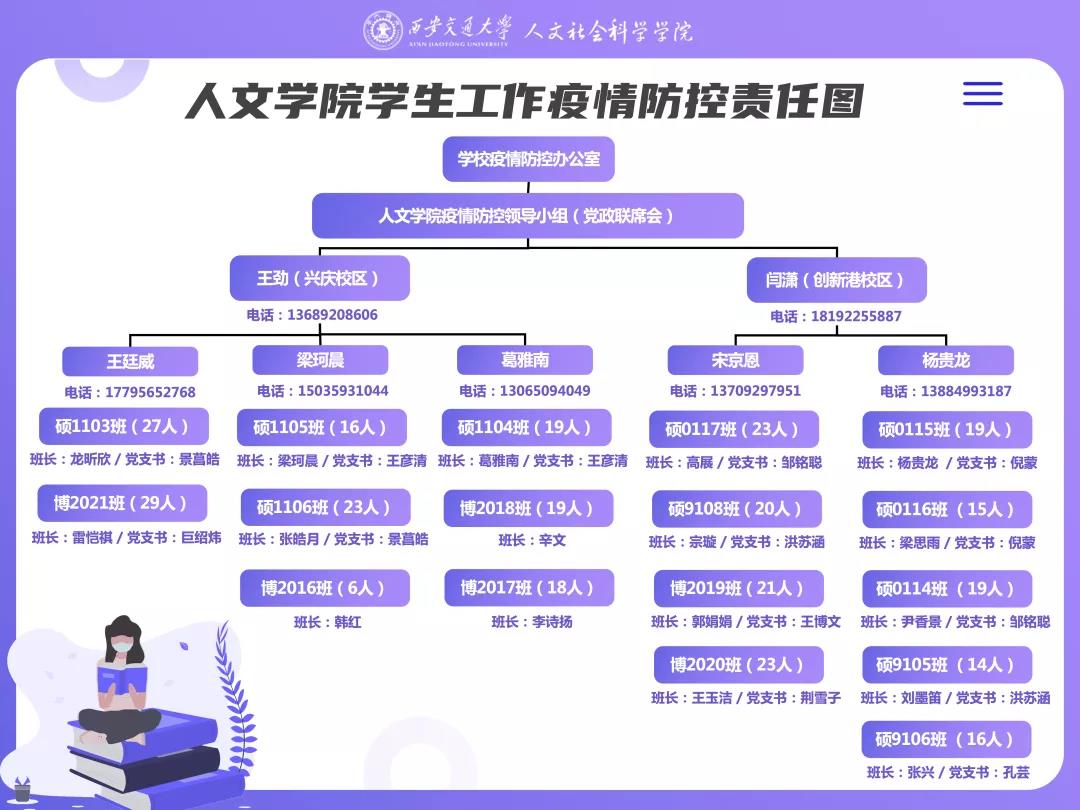 学院疫情防控工作专班在学院党委领导下,院办、学工、教务、科研各岗位等紧密配合,牢牢紧盯全员核酸检测、物资保障、师生思想工作等大事,强化院-系所支部-教师三级责任体系,统筹做好每日完成130名研究生、160名教职员工和76名离退休人员的信息摸排、健康每日报和思想政治工作。学院制定了学生工作疫情防控责任图,党委副书记和辅导员分别驻守创新港和兴庆校区,发动学生干部一起,对学生情况做到随时跟踪、随时了解、随时报告、随时处理,积极解决学生面临困难,全力把疫情防控措施执行到位。