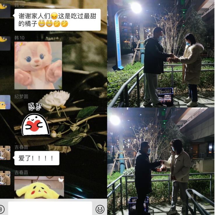 倪蒙、杨贵龙、习钦凯、慕冬冬等同志在学院老师的带领下主动帮助全体全学院同学购买、运输、发放食物及物资,帮助有困难的同学解决需求,连续多天全天奔波劳累仍坚守前线。韩依琳、余晓丹、刁文婷、李梦君等同志加入防疫机动小组,帮助解决人员不足的困境,切实服务好每个同学的衣食住行及核酸检测工作。