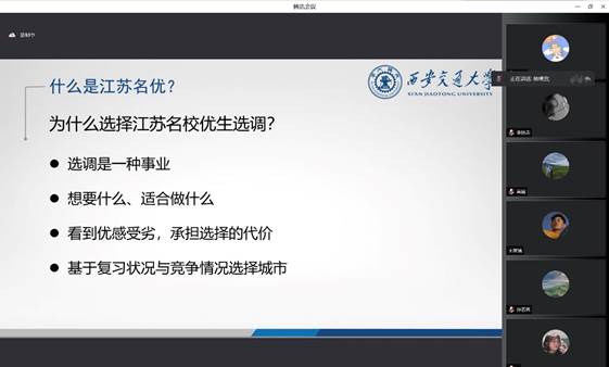 会议伊始,江苏省名校优生选调生(南通)张兴分享了自己考取选调生的经过,详细介绍了江苏名校优生选调的情况,讲述在笔试备考过程中要把握整体、系统学习、长期积累、集中复习,通过回顾备考心态鼓励同学们积极应考,同时面对众多不确定性问题,他建议大家重视风险预期、早做准备、分散风险以及提前制定失败预案。