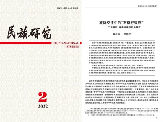 社会学系郭小弦副教授和李晓光助理教授合作完成的研究《族际交往中的“石榴籽效应”——个体特征、网络结构与社会效应》于《民族研究》2022年第2期发表。