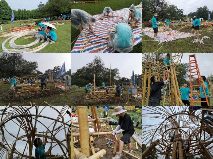 近日,2022年成都公园城市国际花园季暨第五届北林国际花园建造周颁奖仪式在成都市植物园举行。经过近4天紧锣密鼓的现场建造,我系师生团队竹构搭建作品《童梦·同心·与共》喜获三等奖。