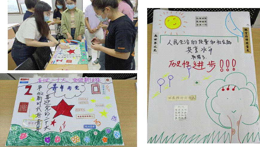 为歌颂新时代伟大成就,支部成员展开手绘活动,手绘时代新篇,展望未来蓝图。支部成员共分成两组进行绘制,大家畅所欲言,抒发自己的理想和对祖国的期待,彰显人文学子的青春活力和爱国之心。