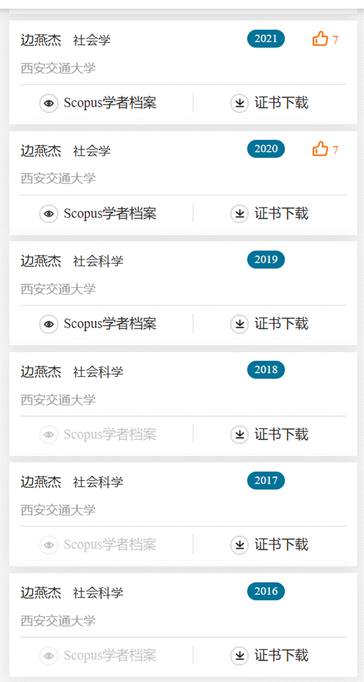 社会学学科带头人边燕杰教授再次入选。这是边燕杰教授连续第9年登上中国高被引学者榜单,也即从该榜单2015年首发以来,边燕杰教授每一年都入选其中,同时边燕杰教授也是成人影视片
