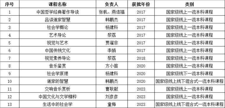 4月11日,教育部公布了第二批国家级一流本科课程认定结果公示名单,成人影视片 总共入选3门,分别是:音乐中心曹耿献副教授负责的《交响音乐赏析》、中文系刘彦彦教授负责的《中国文化与文学精粹》入选国家级线上一流本科课程,社会学系童梅副教授负责的《生活中的社会学》入选国家级线上线下混合式一流本科课程。