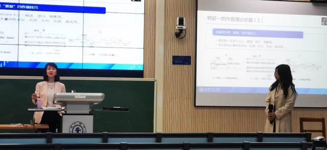 接着,文茹老师和南楠老师共同介绍了音乐中的三种几何变换——移调/模进、倒影、逆行,并以巴赫《音乐的奉献》为例,邀请本学期选修《交响音乐赏析》的同学现场演奏了这部作品的主题,以此说明音乐中存在的数理几何现象并非只是一种偶然的巧合,而是蕴含着精确的逻辑思维。