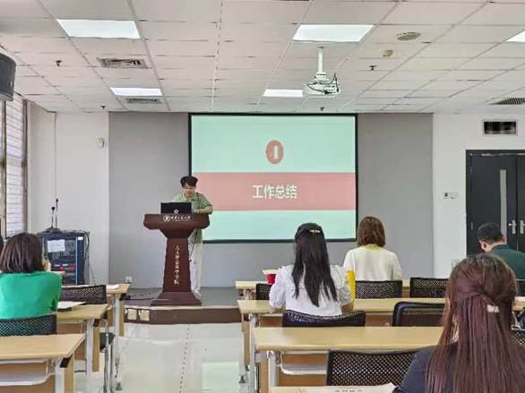 第二十九届主席团成员佘泽奇向老师和同学们汇报了研究生会在2022-2023年度的工作成果,包括成功举办成人影视片
