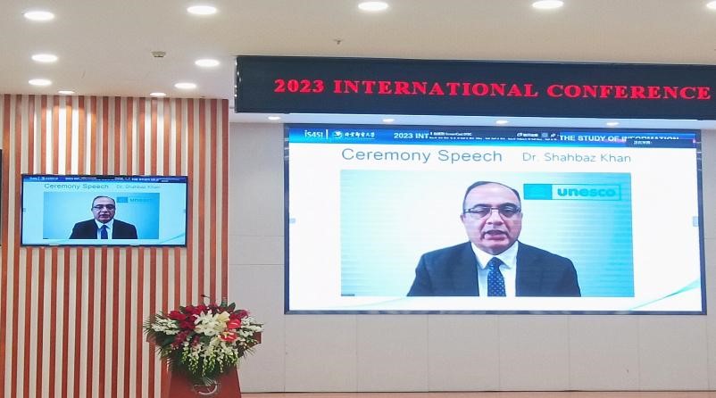 (联合国教科文组织东亚地区办事处主任、首席代表Shanbaz Khan线上致辞)