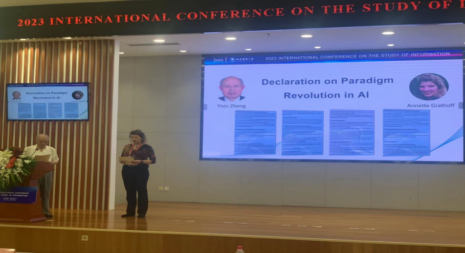 国际信息哲学研究中心获得了由峰会颁发的“优秀组织单位奖”。16日中午十二时许,钟义信院士和国际信息研究会(IS4SI)总秘书长安妮特·格拉瑟夫(Annette Grathoff)共同发表了“人工智能范式革命宣言”(Decalaration of Paradigm Revolution in AI)。邬焜教授为此次国际信息研究峰会圆满成功赋诗一首:高歌一曲动天音,范式更迭势破云,涤旧开新成巨变,文明智信覆乾坤。