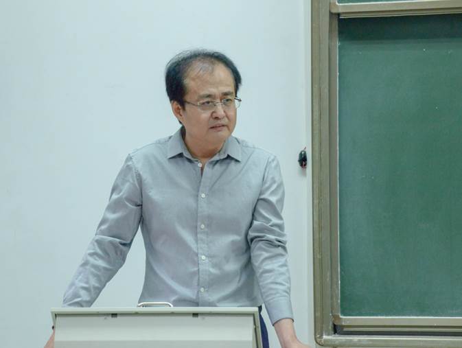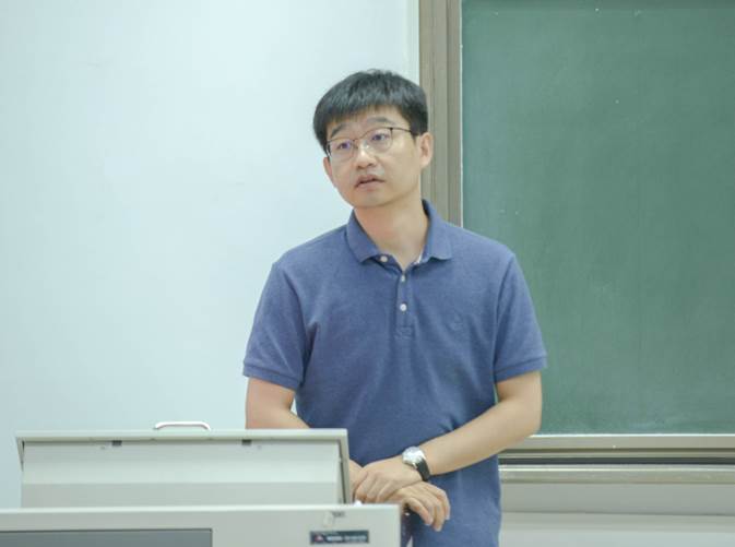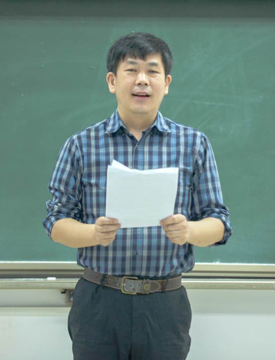 紧接着,哲学系王嘉新副系主任主要就本科教学情况进行了说明。他首先对全体新生表示了衷心的祝贺和热切的欢迎,并重点向本科学生们介绍了学院行政机构的设置、培养计划的内容和专业分流选择等一系列具体问题。王嘉新老师以“保姆”自喻,表达了自己作为本科教学负责人为师生服务负责的工作精神,表示将一如既往地秉持以身作则、温和干练的学生工作作风,为同学们的大学生活学习尽职尽责。