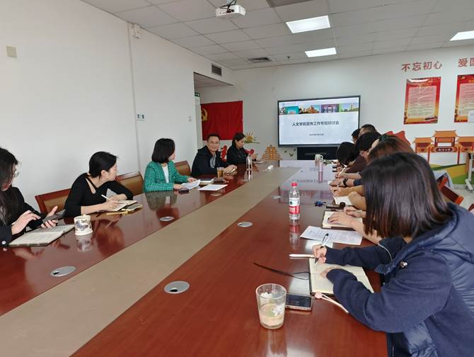 党委书记纪梦然、党委副书记王劲、各教工党支部宣传委员、全体行政人员、人文交大工作室学生代表参与研讨。会议由纪梦然主持。