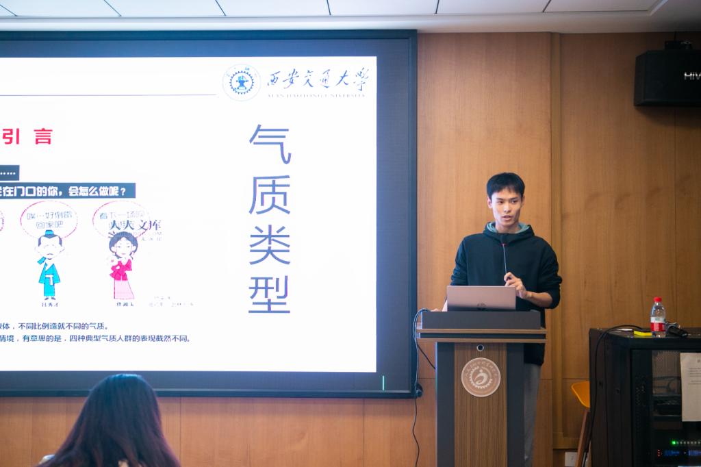 随后,陈星兆同学借用情景话剧的形式介绍了人的气质类型,帮助大家判断自身的气质类型,加深同学们对于自身的认识。