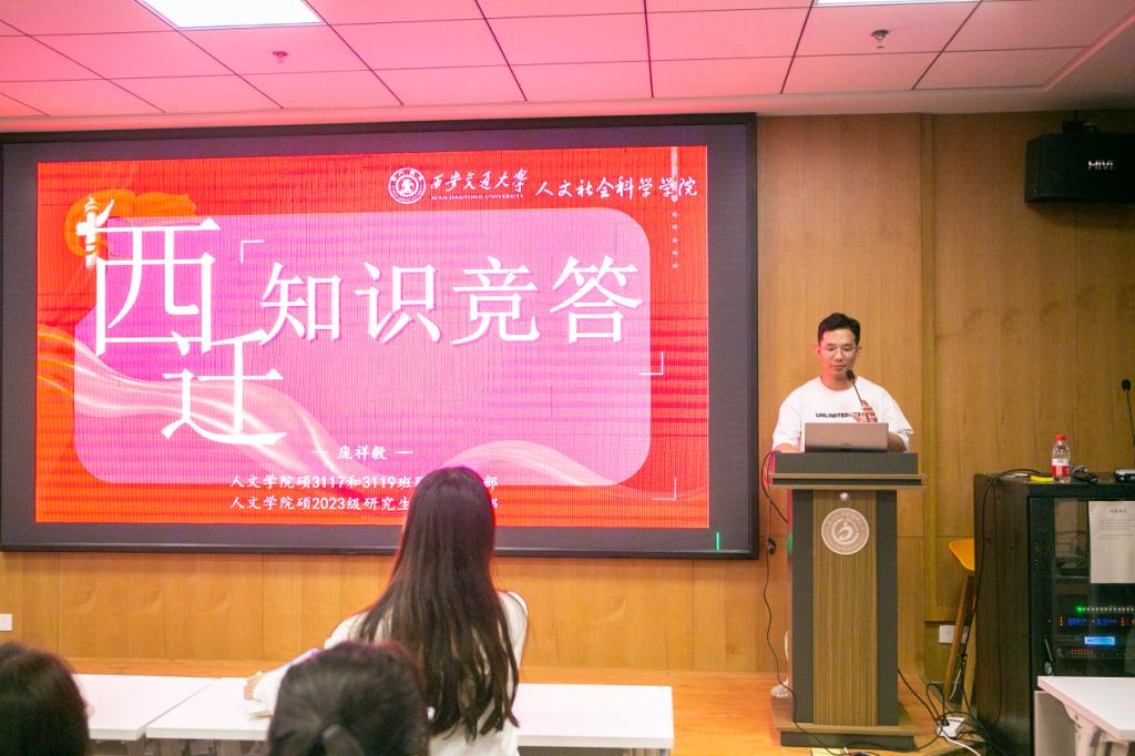 在观影结束后,庞祥毅同志组织了西迁精神知识竞答,问题内容涵盖党章党规、西迁精神、校史文化,设有选择、填空、简答等多种形式,旨在让同学们对党史校史等理论知识有更加深刻的理解和体会。现场抢答氛围十分紧张激烈,高潮迭起。支部成员们踊跃抢答,以扎实的政治理论素养,丰富的校史文化知识,彰显出人文学子积极向上、勇于奋进的良好精神面貌。
