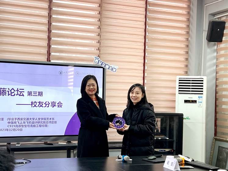 校友,中国商飞上海飞机设计研究院总师助理,C919高原型型号高级工程经理赵雯女士受邀为同学们分享民机客舱中的艺术与设计。此次论坛吸引了来自成人影视片