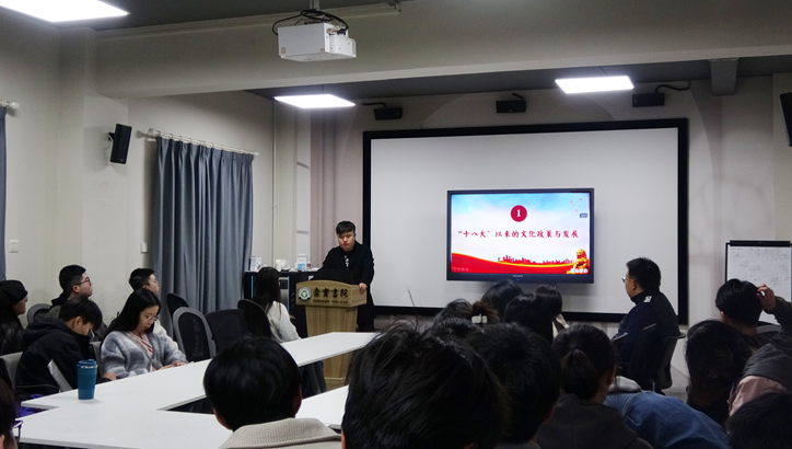 崇实书院师生联合第一党支部宁远同学做“两会中的文化政策与提案解读”主题分享。他向同学们详细分享了十八大以来我国的文化政策与发展、政府工作报告中的文化显现以及“两会”代表的文化提案等内容,并号召全体同学,身为党员和积极分子,要更加紧密团结在党中央周围,为丰富人民群众精神文化生活贡献力量,为推进社会主义文化建设添砖加瓦。