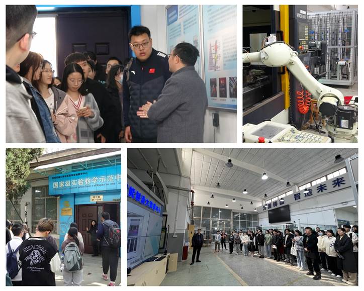 师生一行首先一同参观了机械学院国家级实验教学示范中心。机械工程学院实验中心主任王保建老师向同学们介绍了机械基础国家级实验教学示范中心三层次的创新创业教学体系,王保建老师通过视频形式为同学们介绍了CDIO特色项目课程以及机械基础智能制造系统平台,并邀请同学体验智能化生产过程。通过实地参观,让同学们深入了解了西安交大工科实践教学平台,深切体悟到机械学院严谨创新的治学态度和科技创新的魅力。