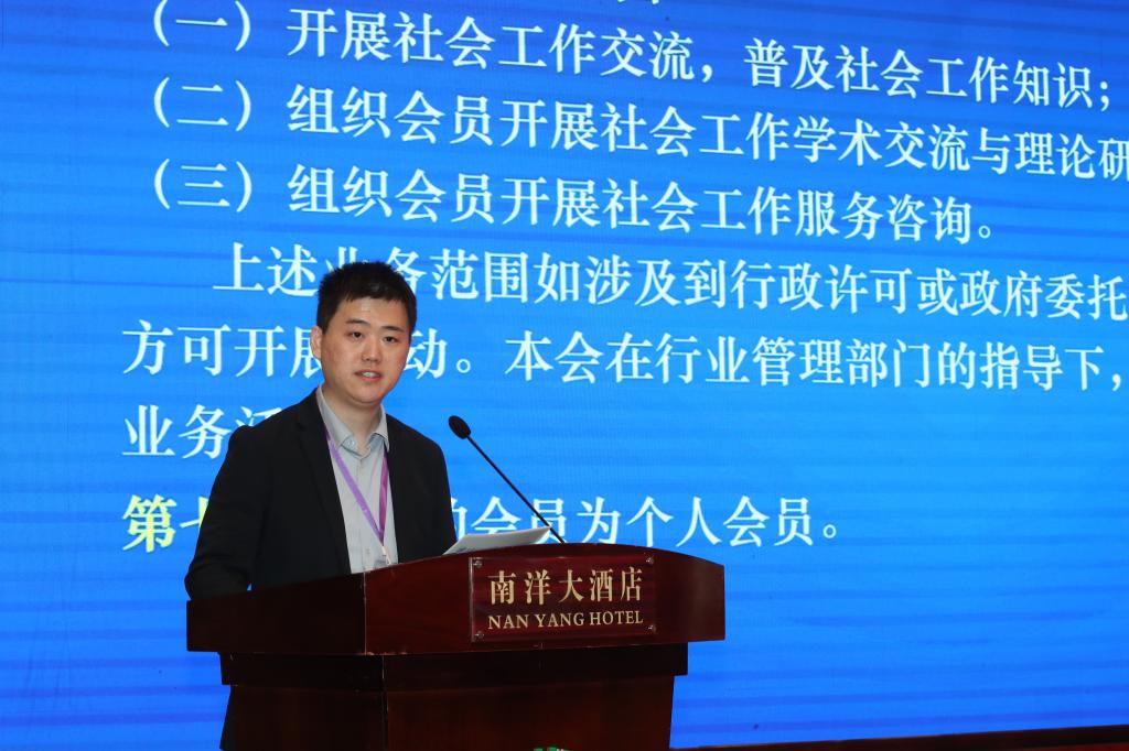 学会筹备组孙晓冬副教授宣读《陕西省社会工作学会章程(草案)》和《会费标准及管理办法》,为学会的运行提供规范和制度保障,并通过全体会员代表的审议。