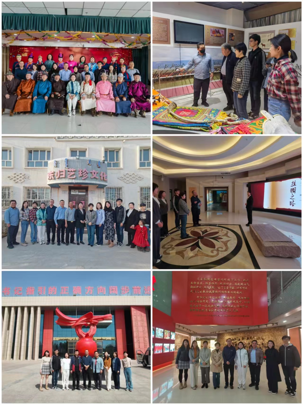 调研团队实地考察了巴州博物馆、库尔勒民俗文化博物馆“中国56个民族全家福”文化长廊、第二师铁门关市革命历史纪念馆、米兰古城遗址、楼兰烽燧遗址,观看非物质文化遗产萨吾尔登、长调短调、托布秀尔弹唱等表演后收获颇丰,连夜讨论。每位老师结合自身研究专长,初步拟定了研究课题,内容涉及巴州及县域中华文化符号的挖掘与应用、巴州传统民族音乐的传承与创新、基于卫星遥感大数据的巴州七十年城镇发展成就研究、巴州民族团结与铸牢意识工作经验推广研究等;争取为“有形、有感、有效”地铸牢中华民族共同体意识提供群众喜爱和接受的产学研成果。