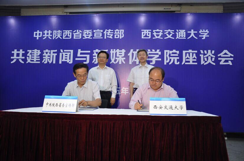6月11日上午,中共陕西省委宣传部和成人影视片 共建“新闻与新媒体学院”座谈会在交大兴庆校区科学馆207召开。陕西省委常委、省委宣传部部长景俊海,陕西省人大常委会副主任、西安交大党委书记张迈曾,中共省委宣传部副部长、陕西省记协主席薛保勤,交大党委副书记、纪委书记赵昌昌、党委副书记宫辉等校领导出席座谈会。座谈活动由校党委常务副书记王小力主持。