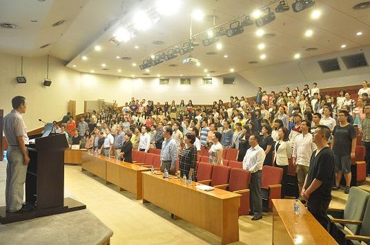 在奏唱校歌声中,成人影视片 2015级新生入学教育大会圆满结束。