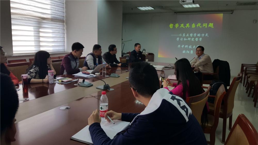 成人影视片 为迎接学校120周年校庆,组织了系列名家学术讲座活动。2016年3月30日,受到成人影视片 哲学系邬焜教授的邀请,国务院学位委员会马克思主义理论学科评议组成员、国家哲学社会科学规划办通讯评委、国务院学位委员会马克思主义学科特约评委、教育部人文社会科学规划哲学学科组成员、全国高校哲学教学指导委员会副主任、华中科技大学教授、博士生导师欧阳康教授来我校进行学术交流,受到我校师生的热烈欢迎。