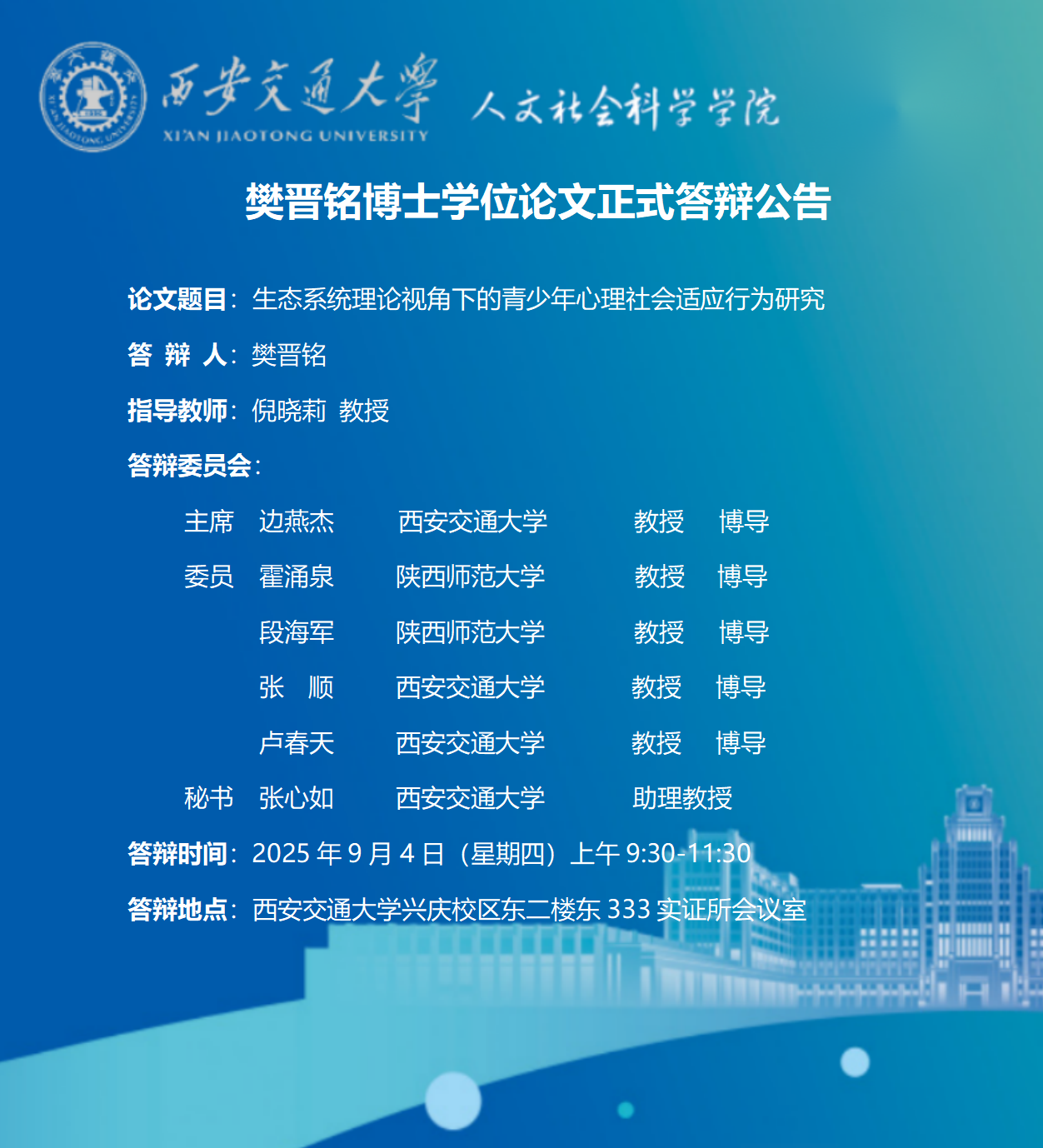 樊晋铭博士学位论文正式答辩公告