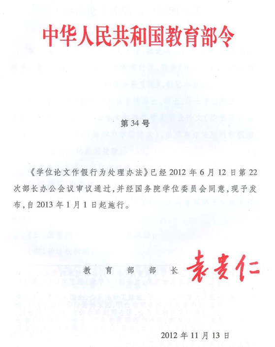 第三条 本办法所称学位论文作假行为包括下列情形: