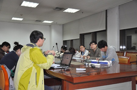 交流会一开始,硕1096党支部书记陈睿介绍了去年“十佳党支部”评选活动,包括初赛、复赛和决赛流程以及各个环节需要注意的问题,重点对当时参加评选的PPT进行展示。接着,硕1048党支部书记訾彦锋谈了在参加“十佳党支部”评选中的心得,从材料准备,组织活动等方面进行了补充,尤其强调号召班级凝聚力的重要性。两位支书在交流中都谈到,通过去年参加“十佳党支部”评选活动,既丰富了支部活动,又加强了同学间的交流,对支部凝聚力的提升有很大的帮助。
