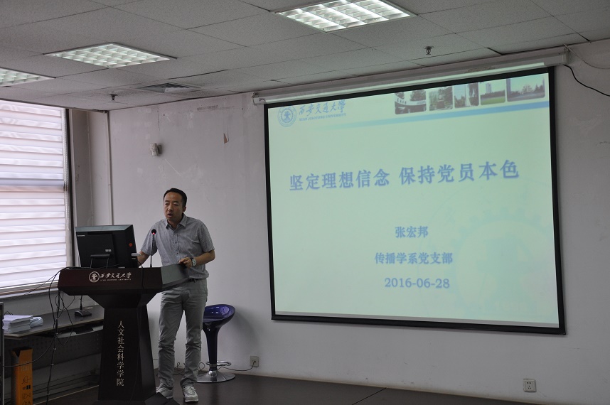 会上,先进党支部和优秀共产党员代表分别做交流发言。社会学系党支部书记童梅同志以“包容多元、传递温暖、共同发展”为主题,展示了支部近两年来的工作做法、工作特色、突出成绩以及未来努力方向;硕士5099党支部书记闫潇同学从组织建设、思想作风建设、支部氛围建设、发挥党员先进性作用等方面,汇报了学生党建工作的风采;优秀共产党员代表张宏邦同志从坚定理想信念、提高政治觉悟,立足本职工作、增强大局意识,坚持以知促行、争做优秀党员三个方面谈了他本人和传播学系全体党员的学习工作状态;迟凯文同学以“实现中国梦,青春勇担当”为主题,阐释了“以青春之我,创建青春之家庭,青春之国家,青春之民族,青春之人类,青春之地球,青春之宇宙”的内涵。