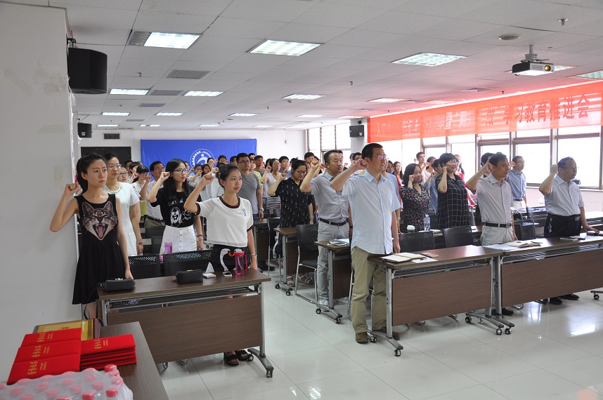在雄壮的国歌声中,大会正式开始。全体党员起立,重温入党誓词,强化党的意识、党员意识,牢记宗旨使命,坚定理想信念。