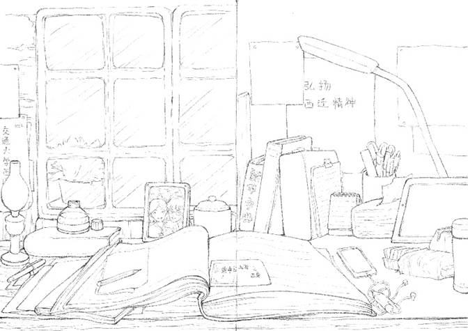 这是1956年交大西迁到西安的第一座校门,整体采用复古质朴风格,运用水彩表现,加以石墙材质,体现年代感和历史感。“胸怀大局”是西迁精神内涵的第一句,担当精神是我们新一代交大学子响应党的号召为建设祖国西部而无私奉献的壮丽凯歌。